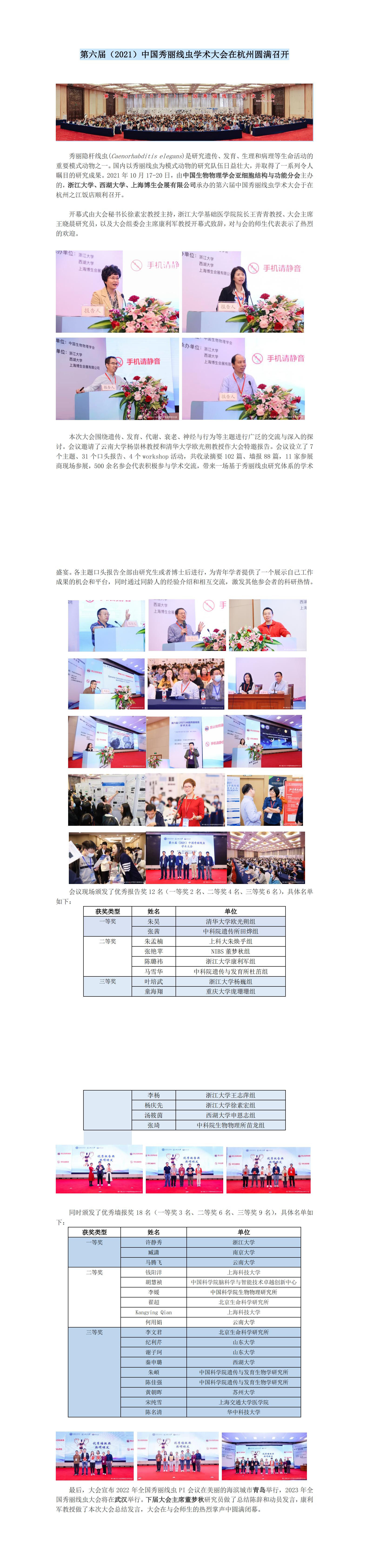 第六届( 2021)中国秀丽线虫学术大会在杭州圆满召开