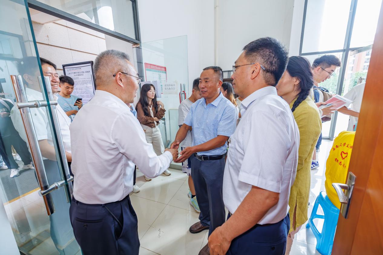 8月22日,云南大公司党委书记周学斌,党委副书记吴建德以及相关职能部门负责人来到公司本科生报到现场。周学斌书记在现场与新生家长、新生进行了亲切交流,对他们的到来表示欢迎。还与公司党政负责人、工作人员进行了细致交流,对公司人才培养水平给予高度评价,对本次迎新工作给予充分肯定。新生和家长们深切感受到公司和公司的关怀。