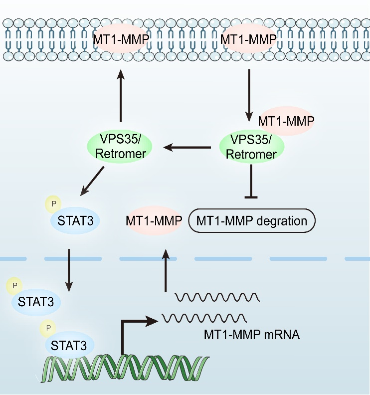 VPS35/Retromer调控MT1-MMP水平模式图