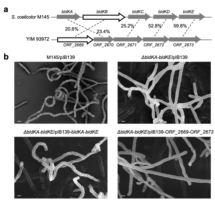 2 YIM93972寡肽转运通道基因(a)及其在天蓝色链霉菌M145突变株中的回补效果(b)