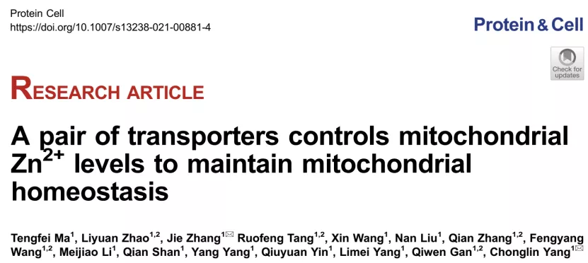 专家点评Protein & Cell | 杨崇林实验室揭示线粒体锌离子转运蛋白