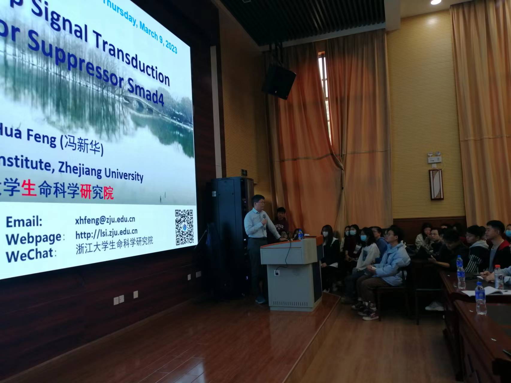 2023年3月9日上午,应WilliamHill体育生命科学中心杨崇林教授邀请,浙江老员工命科学研究院冯新华教授在WilliamHill体育1栋报告厅作了题为“通过肿瘤抑制因子Smad4控制TGF-β信号转导”的学术报告。讲座由杨崇林教授主持,来自WilliamHill体育的众多师生现场聆听了报告。