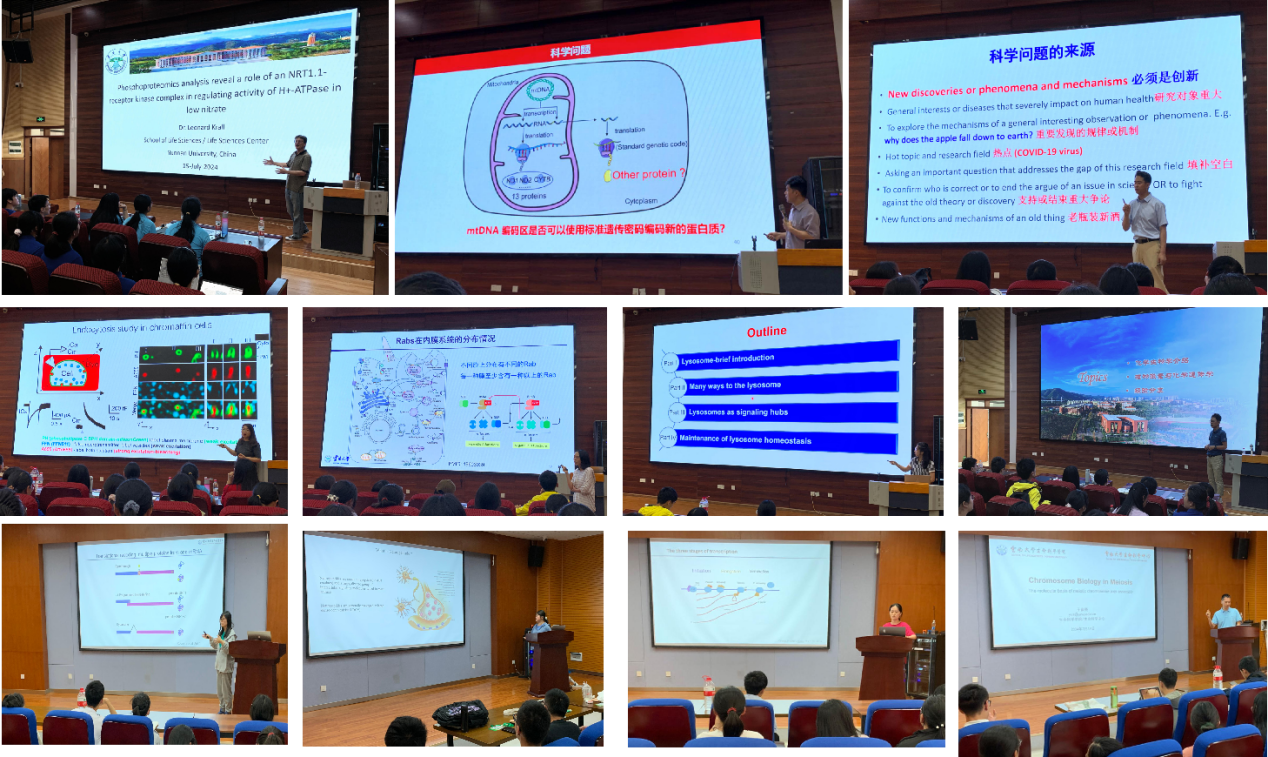 7月16日,中国科公司广州生物医药与健康研究院刘兴国老师和云南老员工命科学中心刘楠老师分别在上午和下午进行了关于《线粒体编码的第14个蛋白》和《蛋白质分选转运和Retromer复合体》的学术报告,学员们通过分组讨论积极交流。7月17日,云南老员工命科学中心尹秋媛老师和任桂萍老师分别进行了《Lysosome》和《Ribosomal Frameshifting at Normal Codon Repeats Recodes Functional Chimeric Protein in Human》的报告,进一步拓展了学员们的视野。7月18日,云南老员工命科学中心姜凯老师和于宙亮老师带来的《Chemical Biology》和《Chromosome Biology in Meiosis》的报告,为学员们提供了更多前沿知识。7月19日,云南老员工命科学中心郝凡锐、刘凤莲和杨娇同学分别以《Bacterial Peptidoglycan Acts as a Digestive Signal Mediating Host Adaptation to Diverse Food Resources in C. elegans》、《Structure and Mechanism of a Neuropeptide-Activated Channel in the ENaC/DEG Superfamily》和《Transcription Directionality is Licensed by Integrator at Active Human Promoters》的报告,使上午的活动高潮迭起。下午,云南老员工命科学中心梁斌老师的《科学问题的发现和探索》为学术报告周画上了圆满的句号。