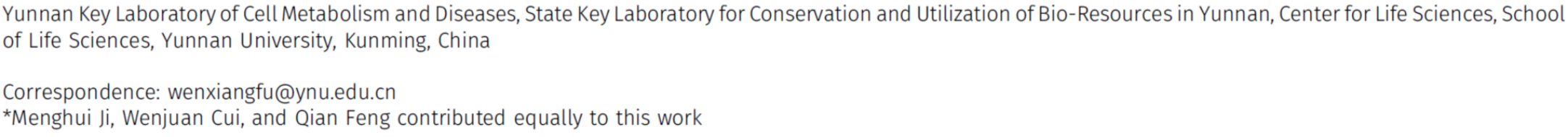 WilliamHill体育研究生纪萌荟、崔文娟、冯谦为该论文的共同第一作者,付文祥博士为通讯作者。该研究依托云南省代谢与疾病重点实验室(筹)、省部共建云南生物资源与利用重点实验室和云南老员工命科学中心完成。