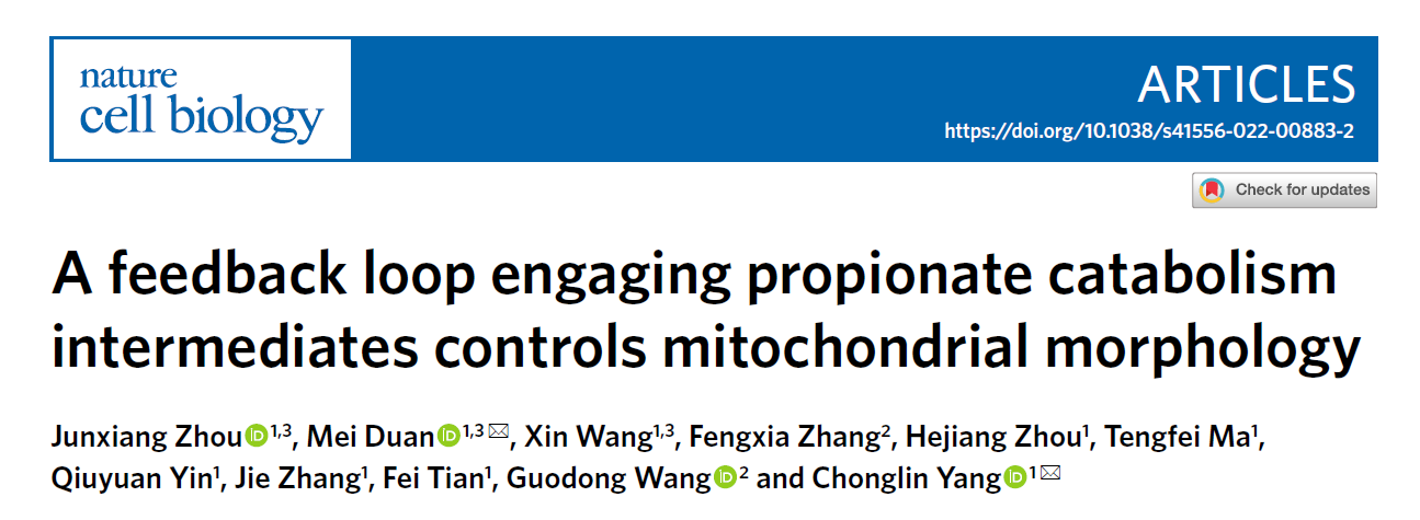 Nature Cell Biology | 杨崇林实验室揭示丙酸代谢中间物D-2HG和3-HP损伤线粒体的机制