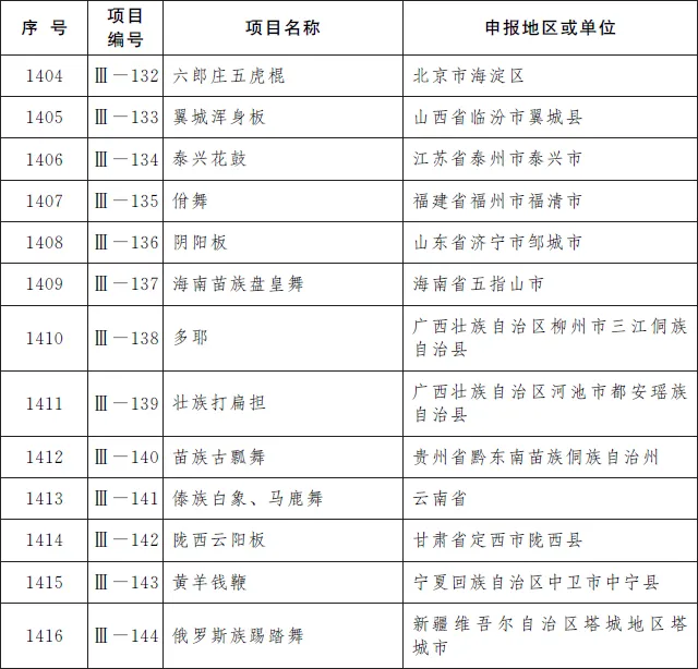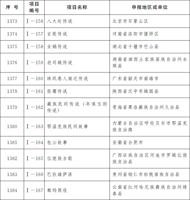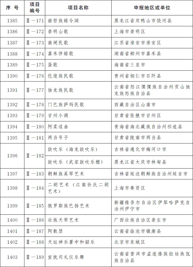国务院办公厅公布第五批国家级非物质文化遗产代表性项目名录共185项