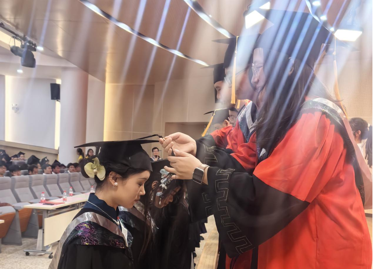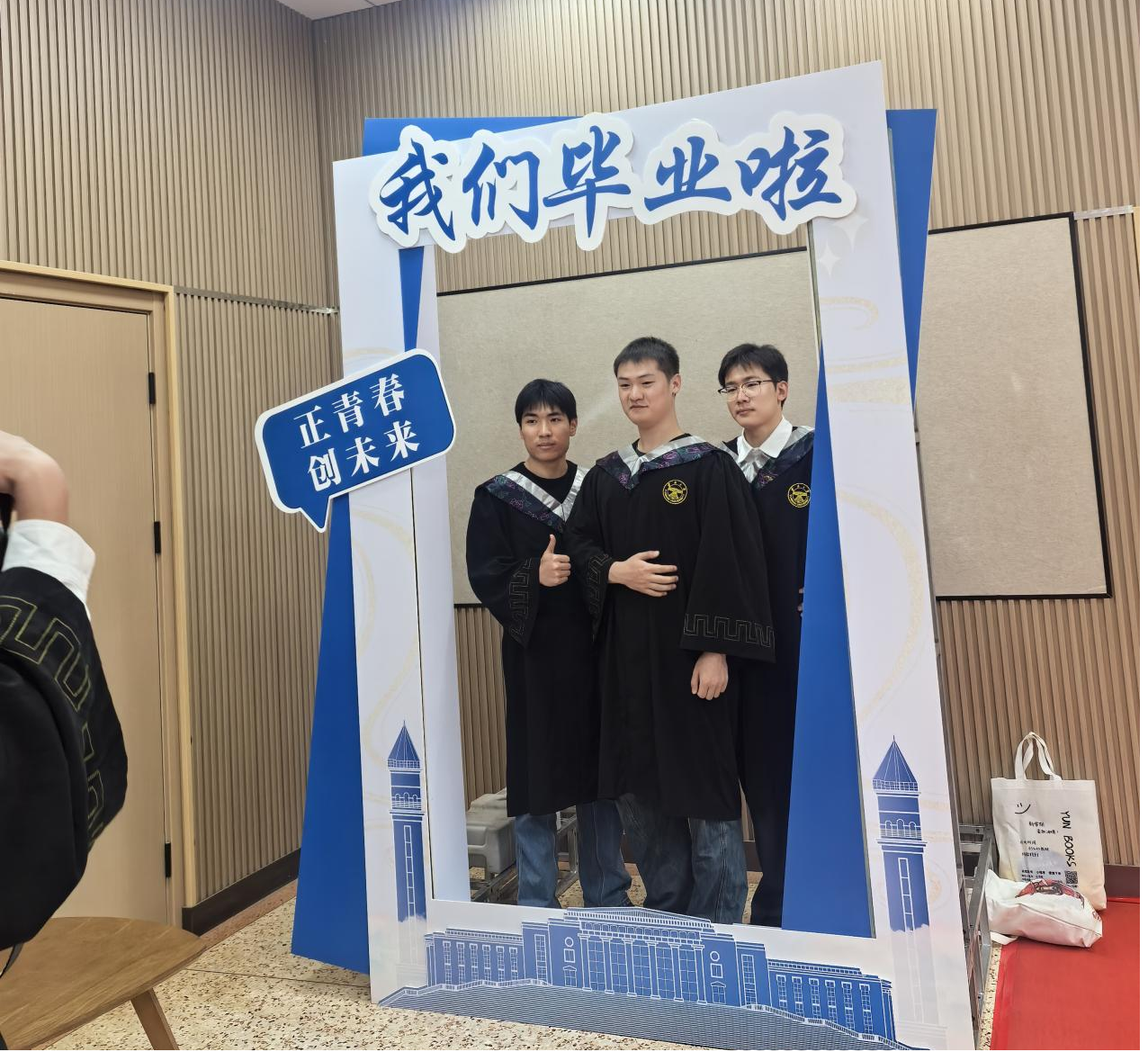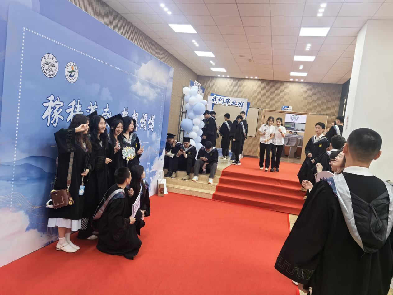 晨曦初染,毕业典礼于楠苑综合楼拉开帷幕。莘莘学子们怀揣收获与憧憬, 笑语交织着簇拥到承载记忆的签名墙,执笔题名对韶华的深情注脚;笑靥如花,光影定格,将青春的美好镌刻入每帧合影。