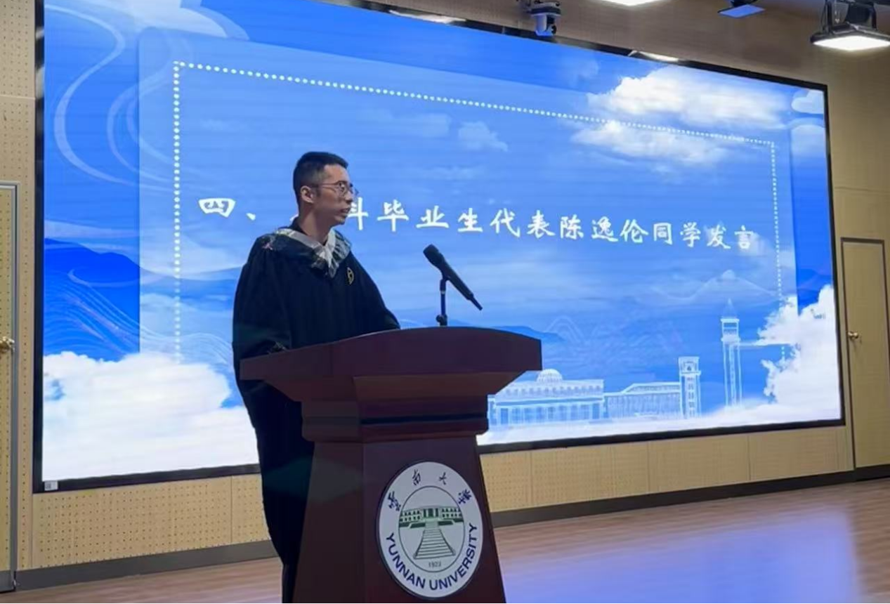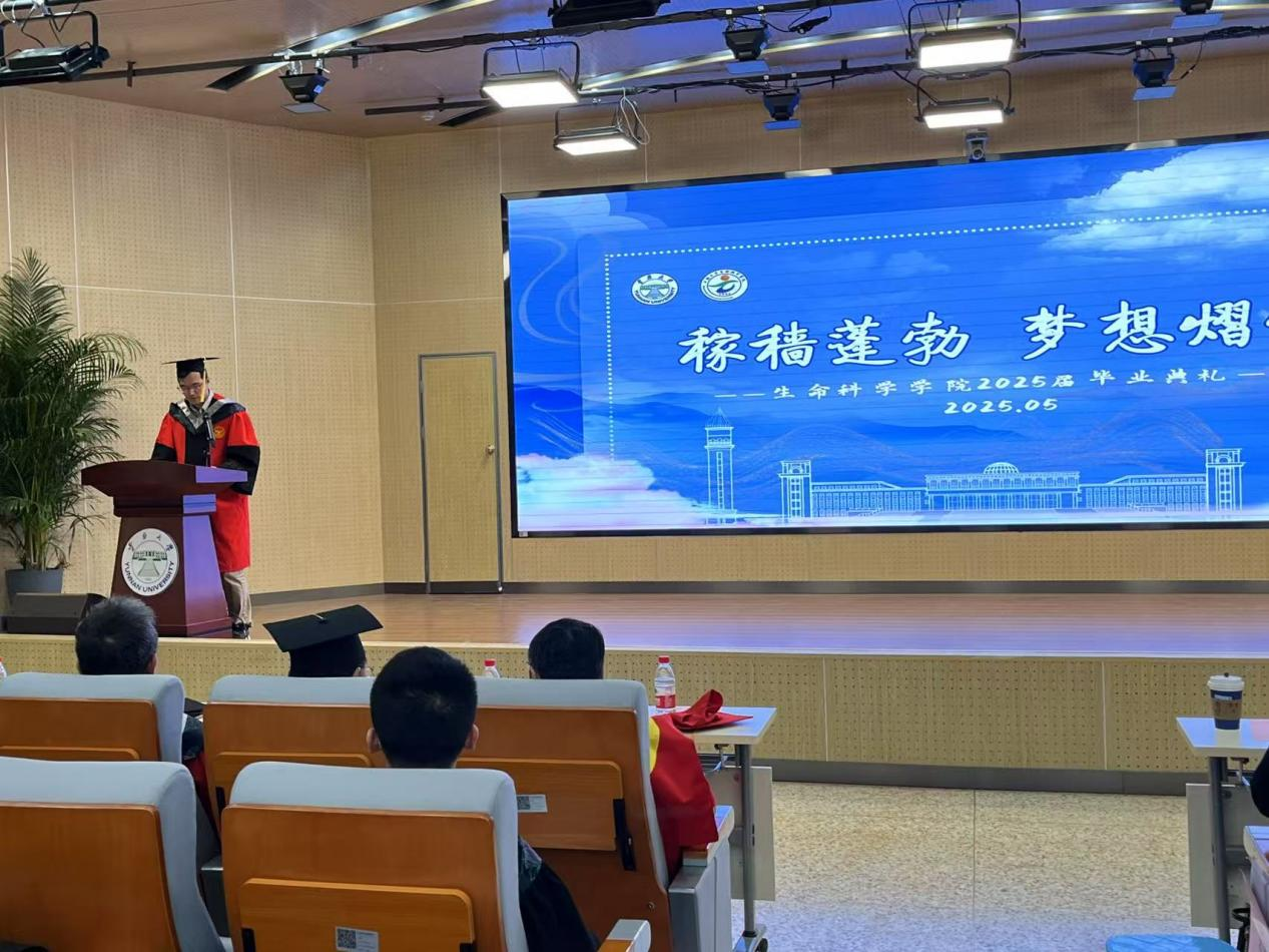 杨崇林以“仰天大笑出门去,我辈岂是蓬蒿人!”寄语2025届毕业生,未来的人生道路上有星辰大海之征途,也将接受风雨之洗礼。希望大家谨记“会泽百家 至公天下”的云大精神,自尊、致知、正义、力行,报效国家、服务社会。希望同学们坚守初心,追求真理,永葆一颗年轻的心。期待未来云大生科与生科学子,定将互为骄傲,不负彼此,交相辉映于灿烂之星河。