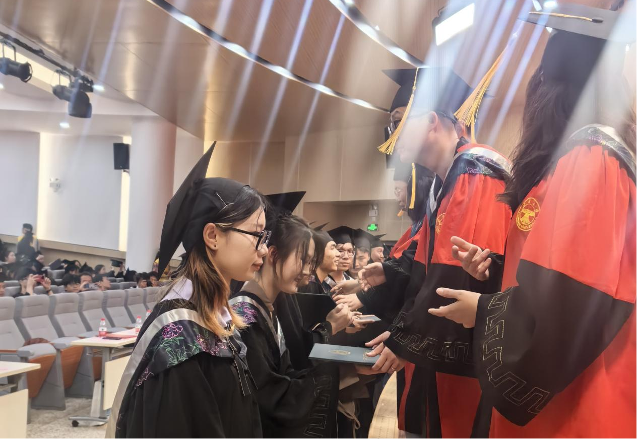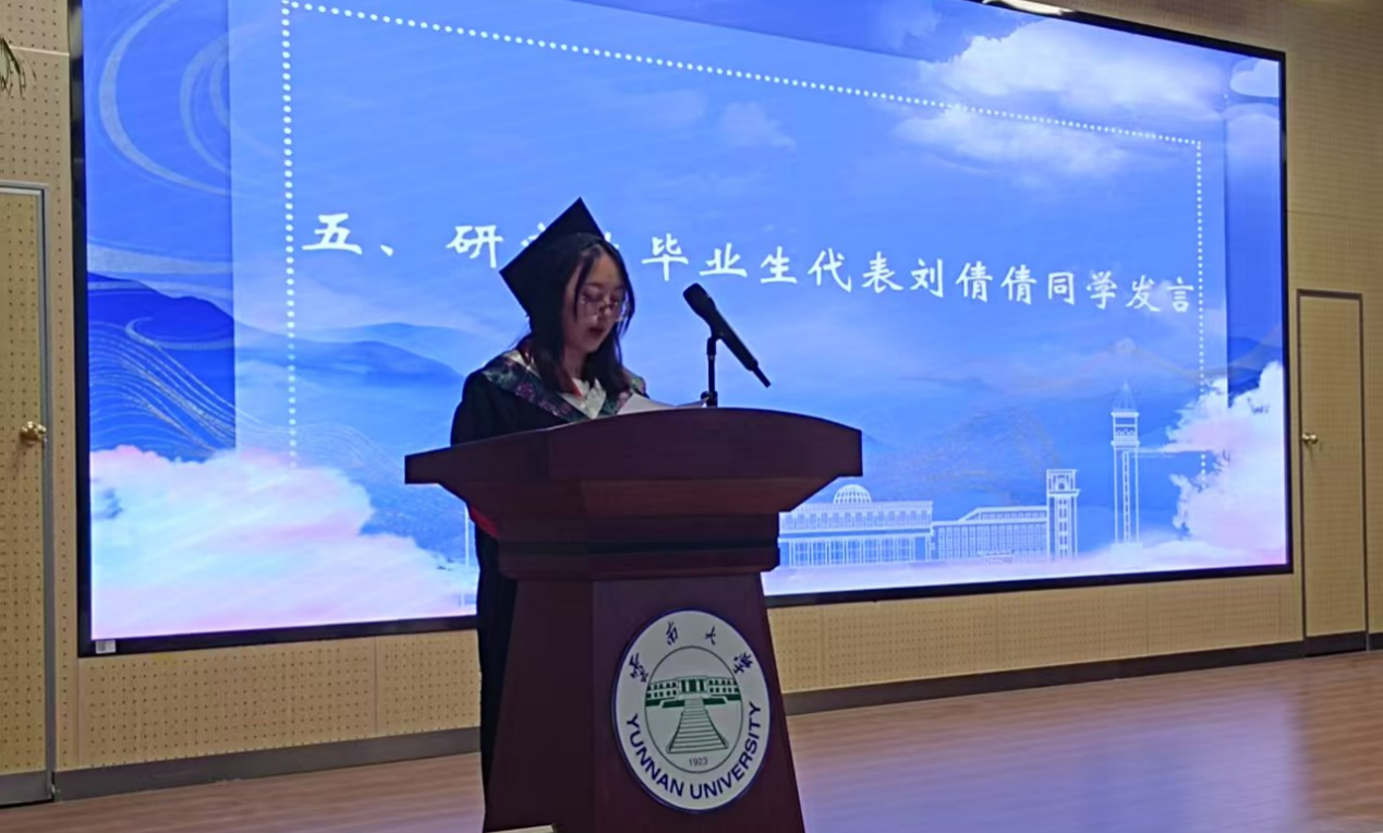 2021级博士研究生刘倩倩作为研究生毕业生代表发言。她回顾求学过程中遇到的挑战与磨练,那些拼搏的日夜,已化作身后的璀璨星河,照亮前行至此的道路。她与各位同学共勉,愿未来道路上,铭记从事生命科学研究的初心,在专业领域继续深耕,保持学习与进步,为二十一世纪生命科学的发展贡献自己的青春力量。