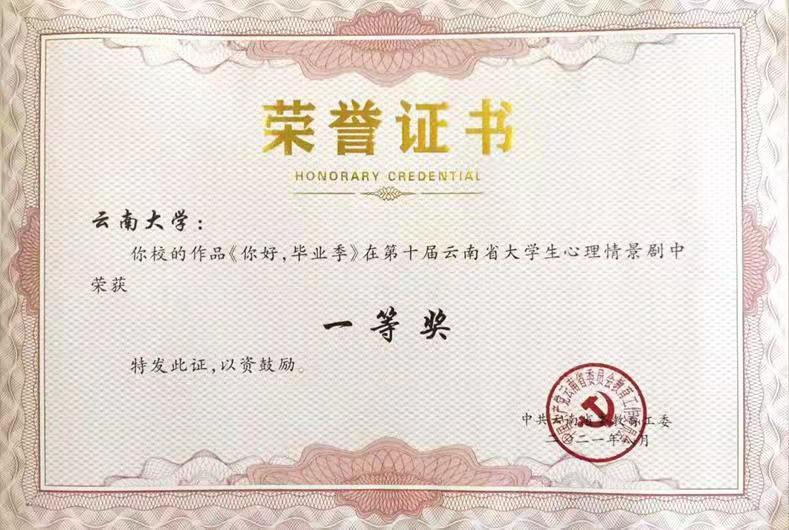 “新健康 心成长 心向党”,2021年第十届云南省老员工心理情景剧大赛由中共云南省委教育工委主办、WilliamHill官方网站承办,全省高校共选送78部作品参加了比赛,经过初赛——复赛——专家评审严格程序,WilliamHill体育心理剧《你好,毕业季》脱颖而出,获省一等奖。