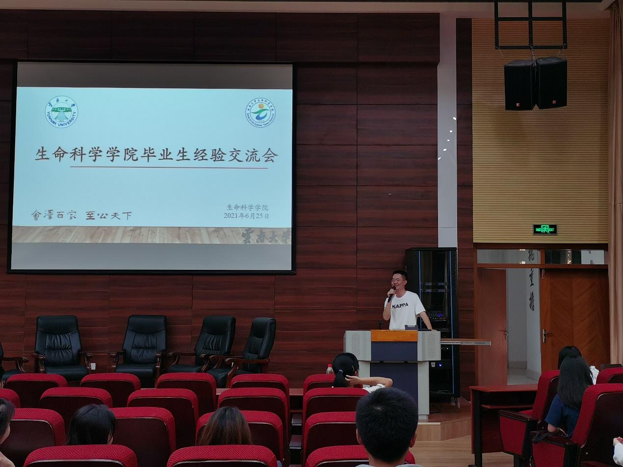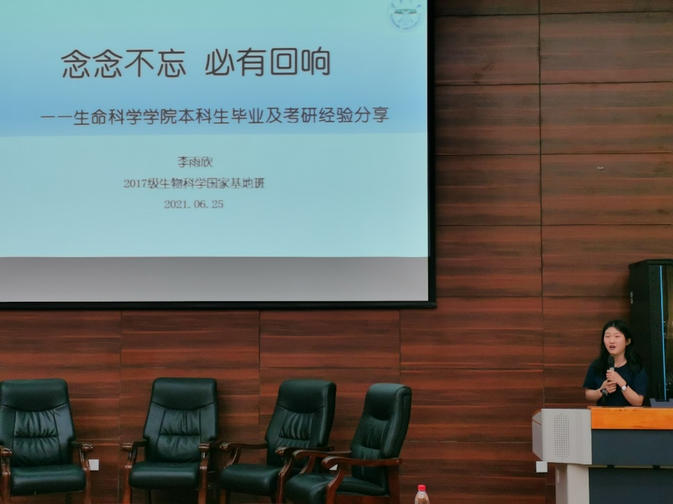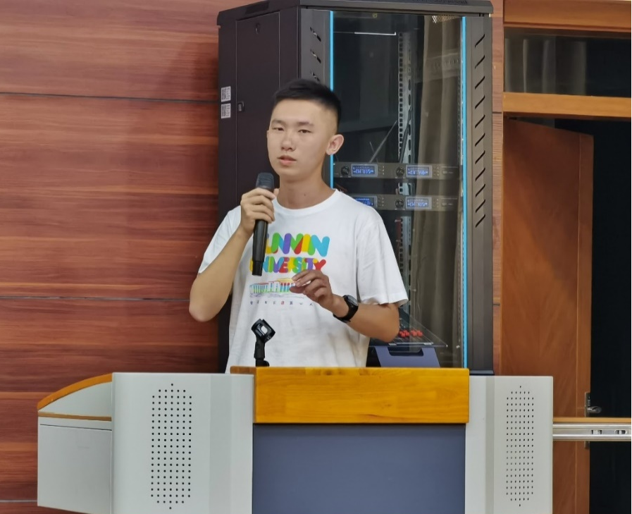 刘煜峰同学最后发言,他向大家介绍了微生物研究所。他用幽默风趣的语言讲述自己决心报考微生物研究所的故事,告诉同学们兴趣可以是选择未来方向的重要参考。
