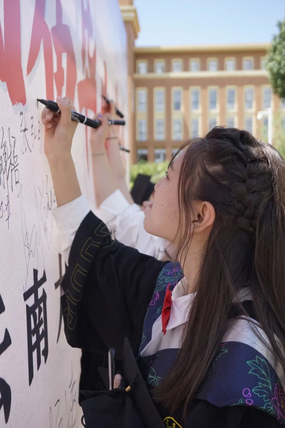 14:00毕业典礼在图书馆西附楼举行开幕活动,毕业生们签字、留影、走红毯、领取公司为每位同学定制的专属毕业礼。