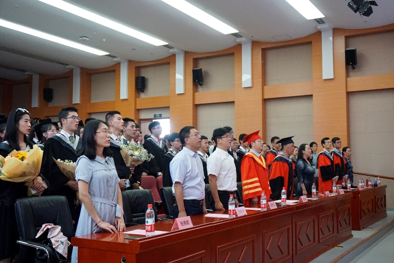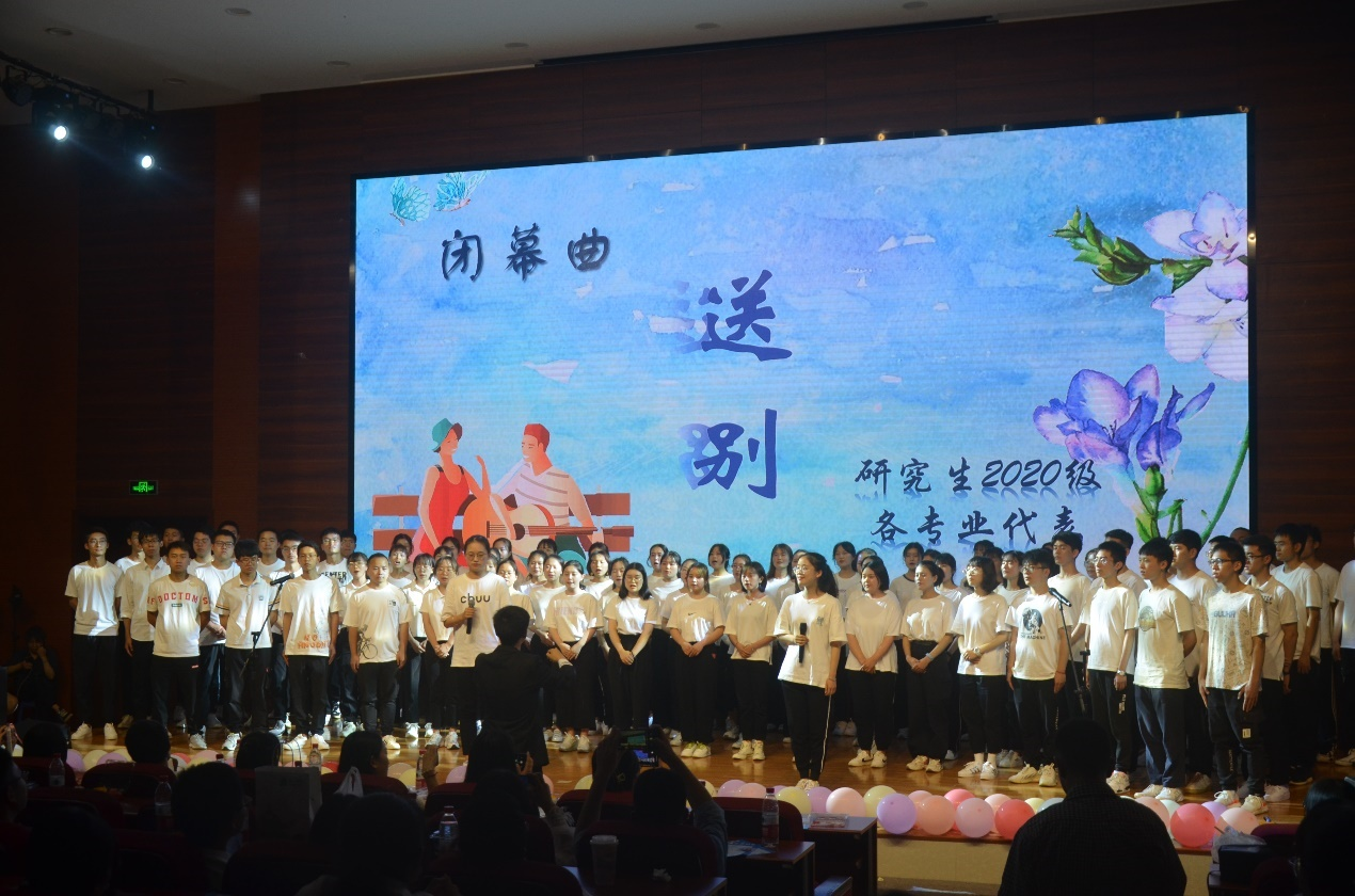 本科生代表刘煜峰同学发言。他感谢老师、同学、父母的教导、支持与陪伴,回忆了自己在大学温馨点点滴滴,从最初的忐忑到“不破楼兰终不还”这样的豪气与热爱。借李白在送友人时诗句“此地一为别,孤蓬万里征”,祝同学们毕业快乐,勇担责任,砥砺前行,祝公司桃李芬芳,蒸蒸日上!