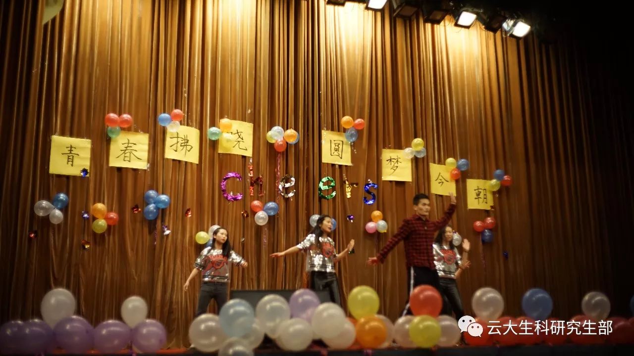 生命科学公司党委书记廖峻涛老师,党委副书记吕军老师,党委委员、植物所党支部书记和兆荣老师,研究生秘书詹云海老师、2015级研究生辅导员丁磊老师、2016级研究生辅导员陈艳艳老师、2017级研究生辅导员苗翠萍老师等公司领导和广大师生观看了本次文艺晚会。乐动舞起,晚会在激情四射的开场舞中拉开了帷幕,演出同学娴熟而动感的舞步、相互之间的配合以及他们与音乐完美的融合,无不感染在场的所有观众。晚会共12个节目,演员们优美的舞姿、深情的歌唱、诙谐的小品等表演,博得了现场观众的阵阵掌声和欢呼声。