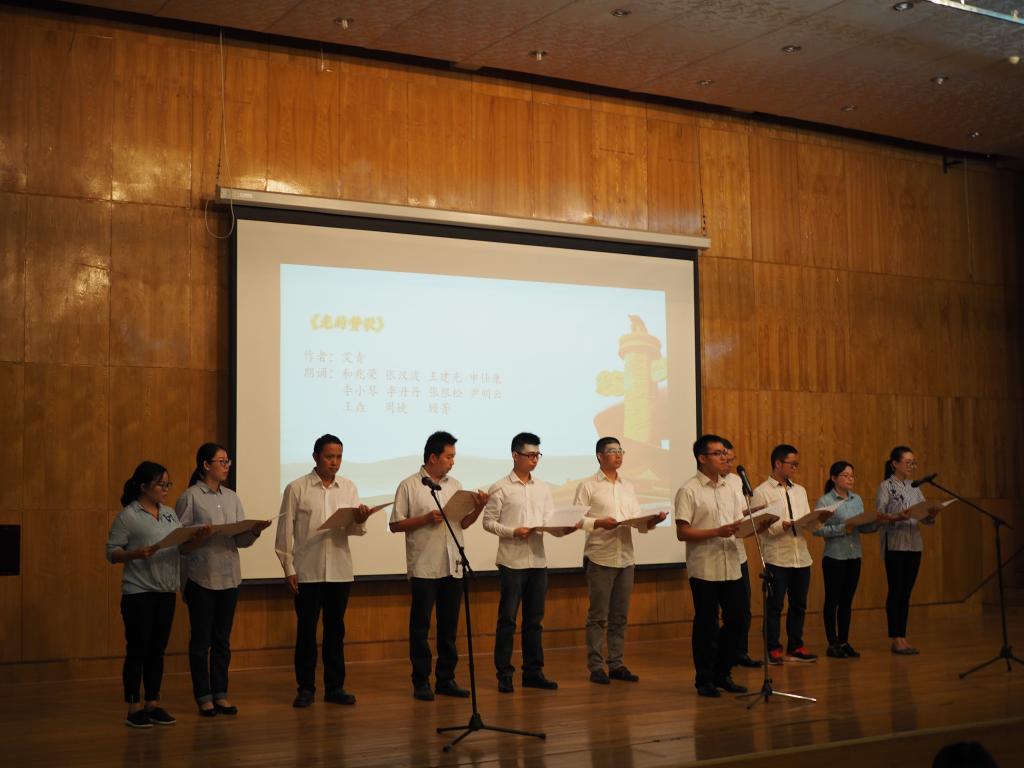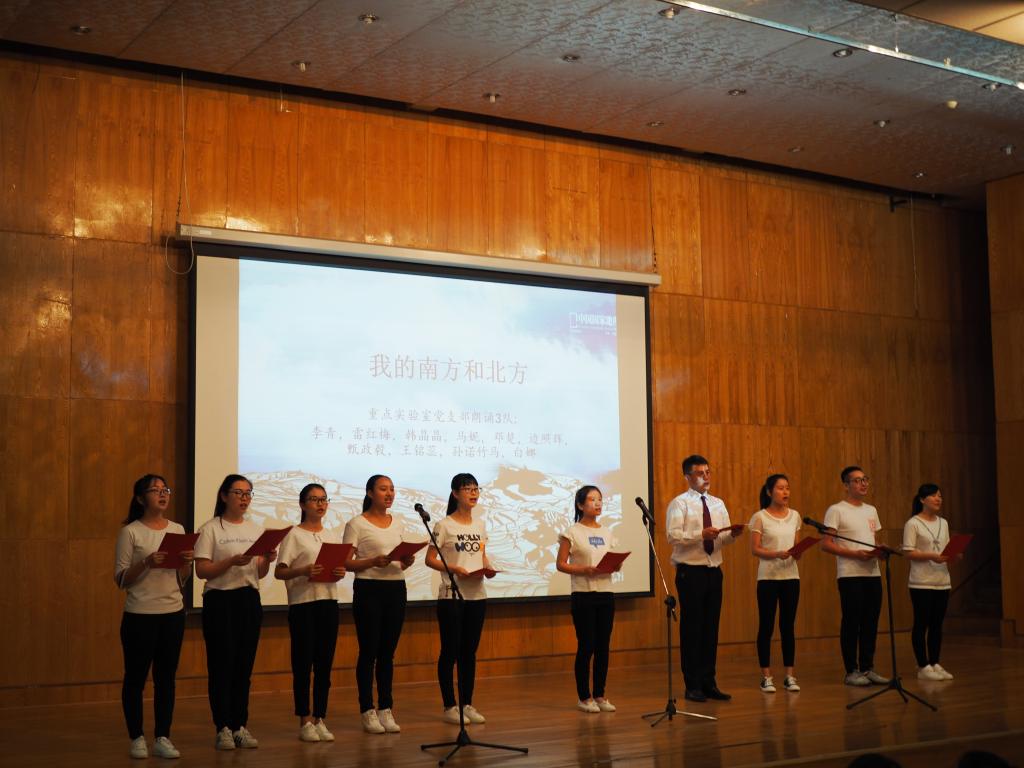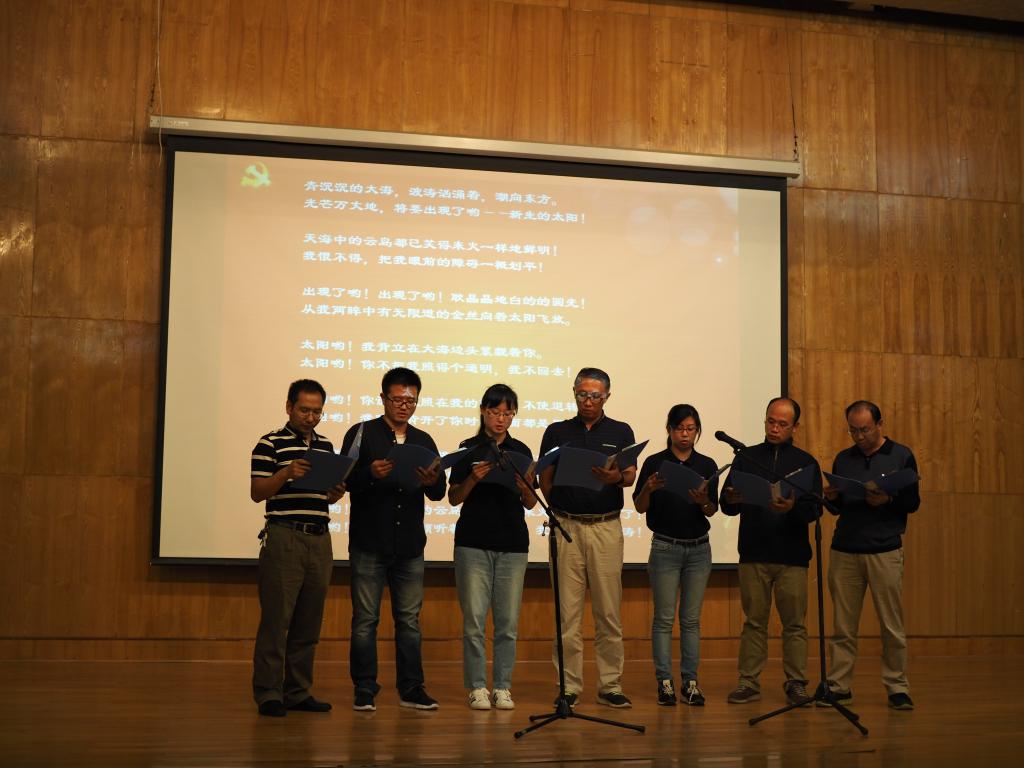 简洁的开幕式后, 7个党支部9支参赛队伍纷纷亮相,比赛正式开始。比赛由“经典朗诵”、“颁奖”两个环节组成。在经典朗诵环节,选手们分别围绕“永远跟党走”、“光的赞歌”、“少年中国说”、“相信未来”等话题进行了朗诵,在展示他们个人风采的同时,也体现了当代教师、研究生、老员工对国家、中国共产党、社会、历史、人文、情感的关注与思考。其中舞蹈与朗诵结合的微生物研究所党支部支队将比赛推向高潮,微生物所党支部、植物所党支部、动物所党支部等支部实力大比拼更是突出了选手们在朗诵方面的天赋,慷慨激昂的语音语调、得体大方的姿态语言,赢得了评委们的一致好评。