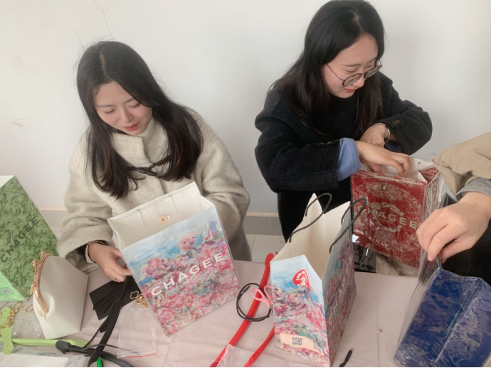 座谈会后,活动进入了充满创意与乐趣的环保纸袋改造环节。参与师生利用废旧纸袋,通过剪裁、绘画、装饰等方式,将其改造成独具特色的环保购物袋。这一过程不仅让大家体验到创意制作的乐趣,更深刻感受到了低碳生活的意义。活动现场气氛热烈,师生们在欢声笑语中共同迎接节日的到来,传递节能减排、低碳环保的理念,激发践行低碳理念的热情,为绿色生态文明建设注入自己的一份力量。
