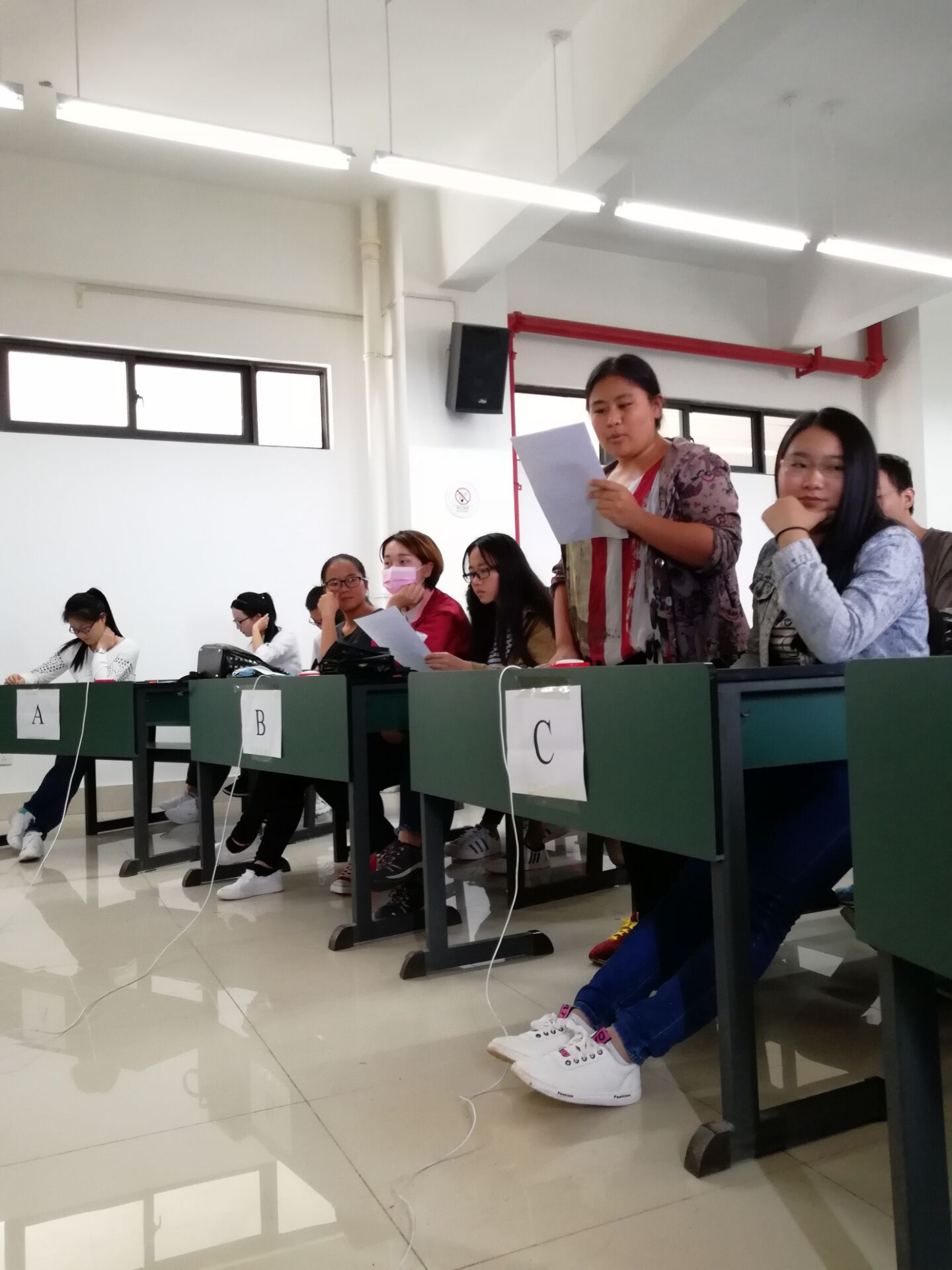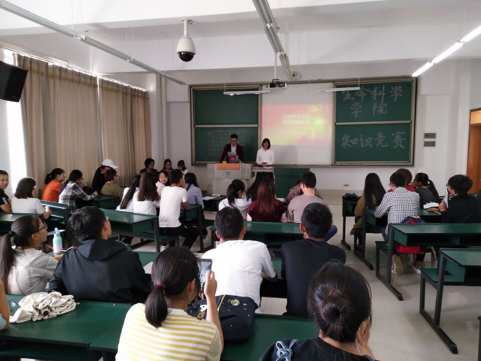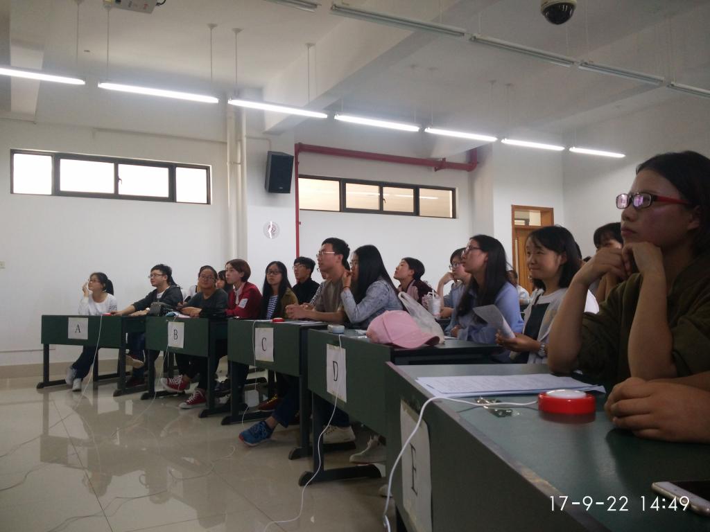 知识竞赛分为三个环节,有A~E共五个小组参加。第一个环节是必答题。大家用严谨的态度回答问题,比赛有条不紊地进行着。第二个环节是互相提问,各个小组之间进行了激烈的问答,气氛一度被推上高峰。第三个环节为抢答环节,参赛的同学们进行激烈的抢答,现场气氛十分活跃,答对的小组全场为之鼓掌,答错的小组也不气馁,为下一题做准备!