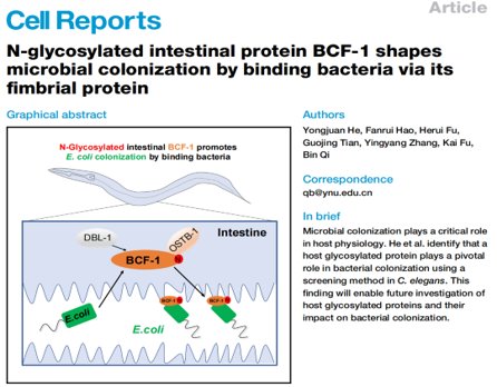 Cell Reports|祁斌课题组揭示宿主糖基化蛋白BCF-1调节细菌定植的机制